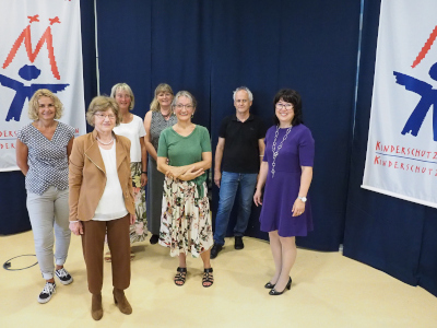 von links nach rechts: Karin Kohler (Vorstand Stiftung DKJE), Elke Dohrmann (Koordinatorin), Joachim Roland, Brigitte Reinicke, Heida Weber, Yvonne Nordmann, Angelika Gils, Marei Enoch