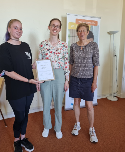 von links nach rechts: Judith Houy, Klaus Hoppe (Stiftung DKJE), Birgit Großhans