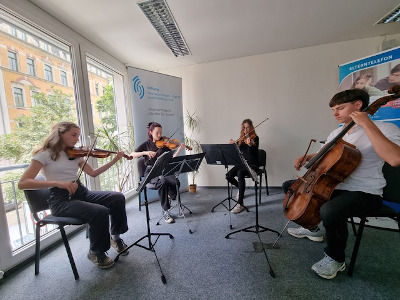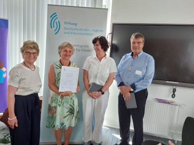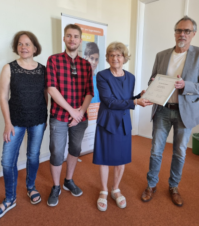 von links nach rechts: Monika Steininger (Stiftung DKJE), Sophie Geist, Dieter Kropp und Kristina Lehfeld