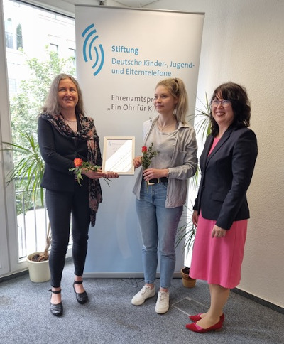 mitte: Karin Kohler, Vorstandsvorsitzende Stiftung Deutsche Kinder,- Jugend- und Elterntelefone links: Viola Sauter, 1. Vorsitzende Kinderschutzbund Landau rechts:Christin Fritz, Projektleiterin Kinder- und Jugendtelefon Landau