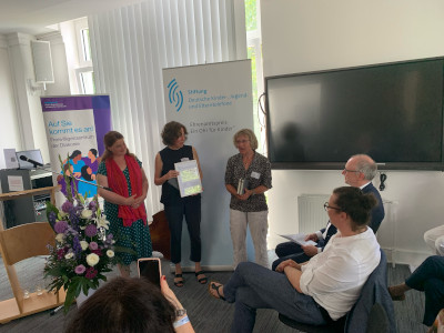 von links nach rechts: Maria Knott-Klausner (Stiftung DKJE), Antonia Baumeister, Jörg Claus, Kerstin Graff